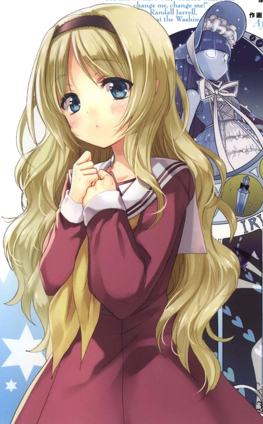 Chiaki immediately logs out and runs to the bathroom, where she ignores the three bullies and invites Lilya into the Enbuken. Lilya happily accepts, and later that day Yuuko Hoori becomes her parent, and she becomes a Burst Linker. Once her Avatar is created, they go into the Accelerated World to see it. Surprisingly, the doll-like Iris Alice has absolutely no Special Moves or Abilities; the only thing that can be seen is a small vial of liquid in her hand.